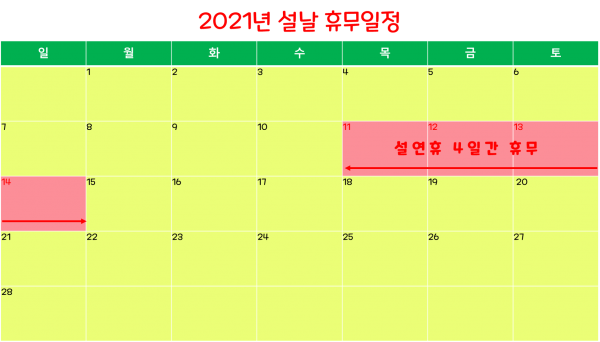 2021년 설연휴 근무일정